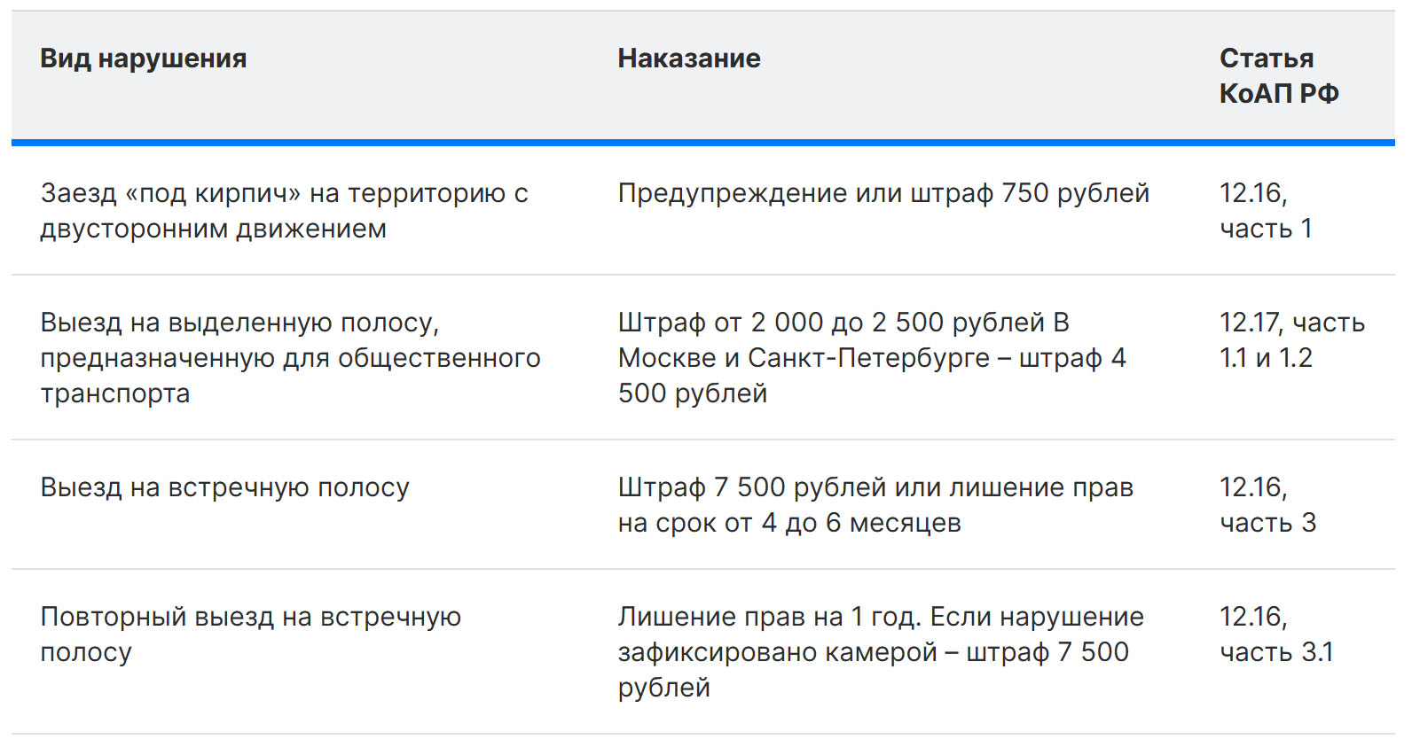 Вот список штрафов за различные способы проезда под знаком «Въезд запрещен»: